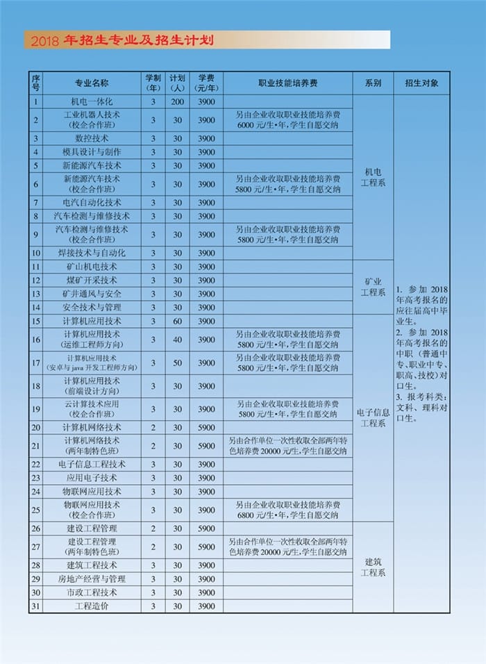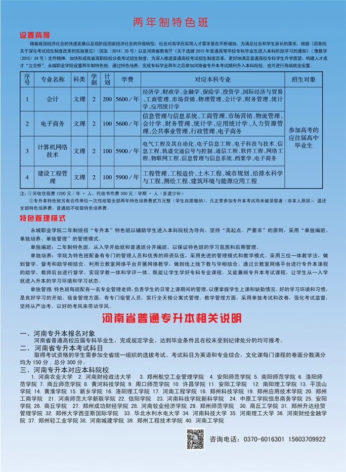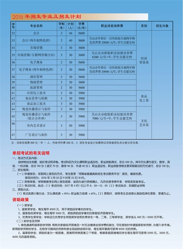 永城职业学院2018年单独招生简章